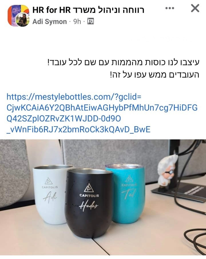 רוצה להמליץ על מיתוגברנד, עיצבו לנו כוסות מהממות עם שם לכל עובד! העובדים ממש עפו על זה!