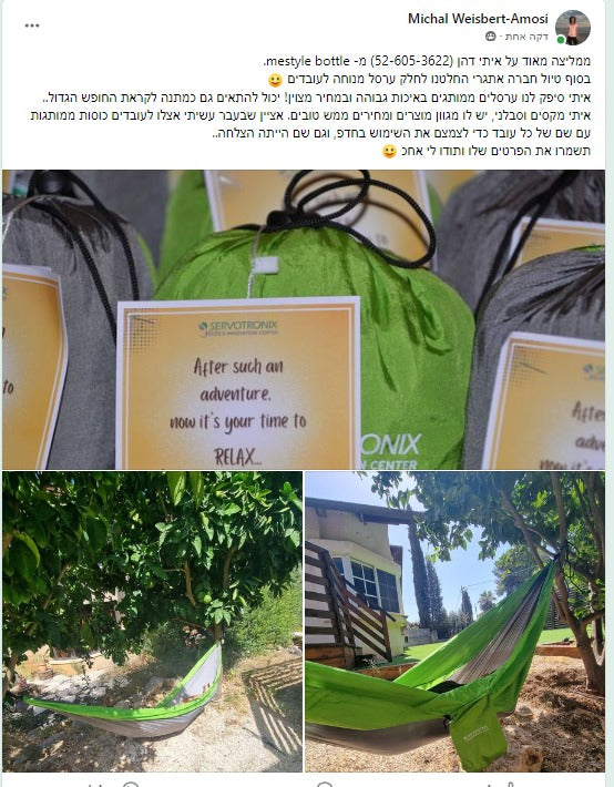 ממליצה מאד על סוואגיפטי! בסוף טיול אתגרי החלטנו לחלק ערסל מתנה לעובדים! איתי סיפק לנו ערסלים ממותגים באיכות גבוהה ובמחיר מצויין!